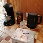 يمكن للضيوف إعداد وجبات الطعام في منطقة المطبخ الصغير المجهز أو تناول الطعام في منطقة لتناول الطعام في الهواء الطلق. كما يتمّ توفير الغلاية الكهربائية والمجمدة والآنية الزجاجية في المطبخ.